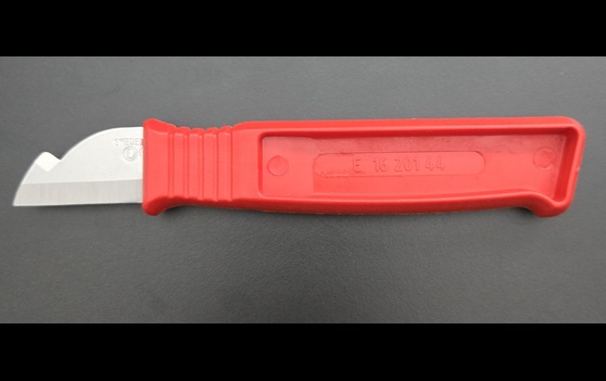 Bladet är tillverkat av härdat stål och handtaget av slitstark plast. Det korta bladet tillsammans med skalhaken ger hög precision och god kontroll över skärdjup och riktning. Kniven är framtagen för arbete med plastmantlade kablar och är utformad för att skydda både isolering och skärm.